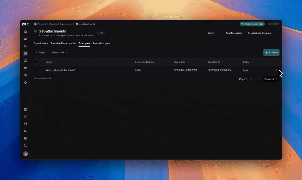 In the code above, we showed how to add examples with attachments to a dataset. It is also possible to update these same examples using the SDK.