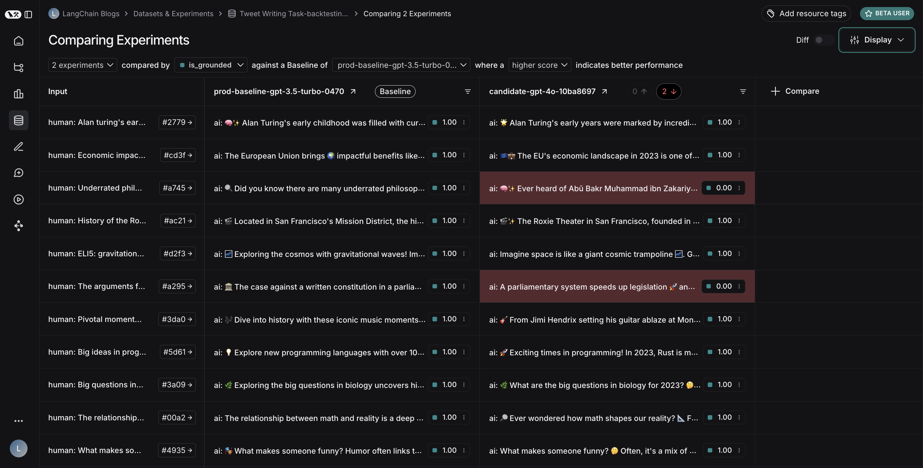 This backtesting exercise revealed that while GPT-4o is generally considered a more capable model, simply upgrading to it wouldn't improve our tweet-writer. To effectively use GPT-4o, we would need to: