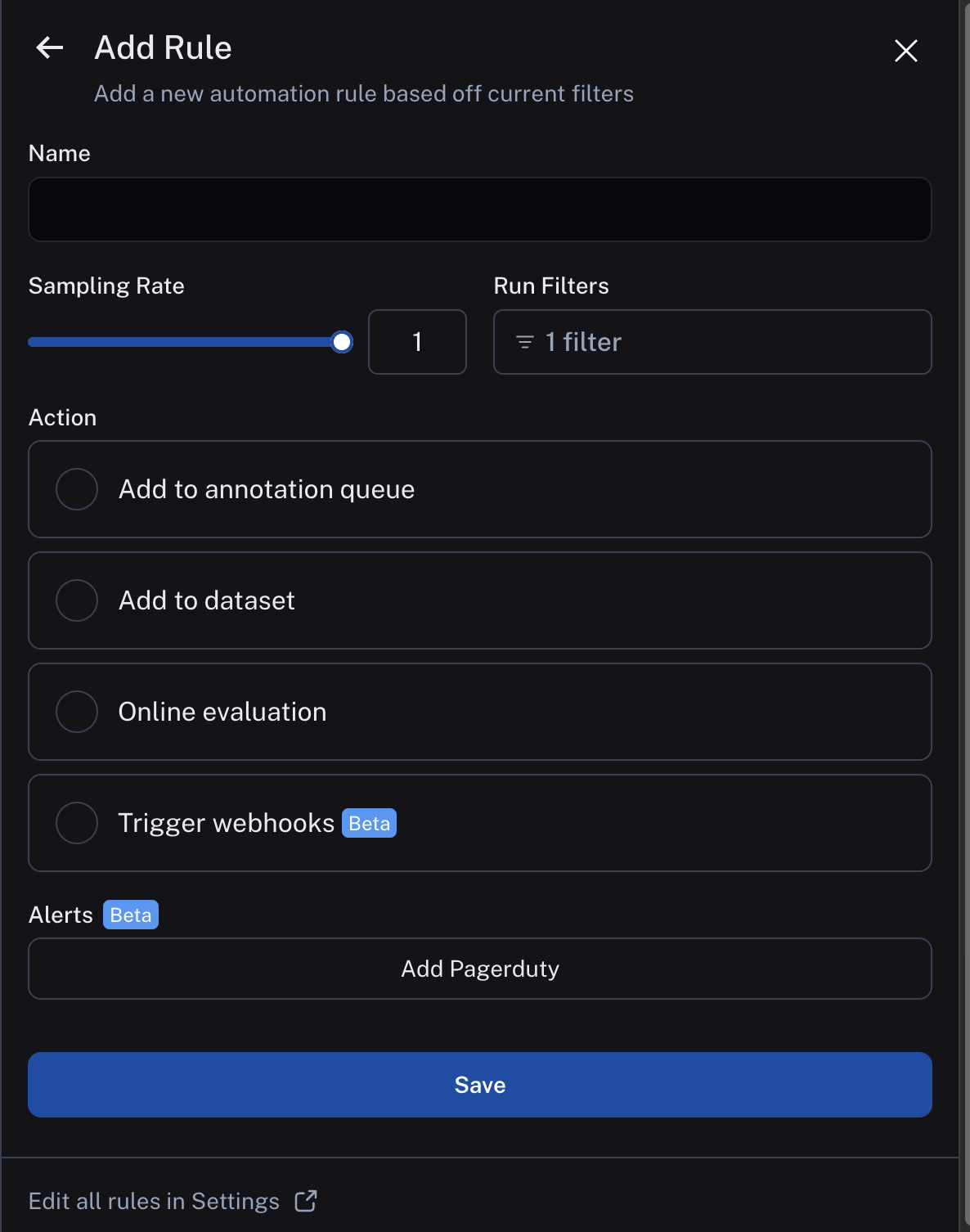 Save once your code works, and your online evaluator will now run over newly sampled runs (or backfilled ones too if you chose the backfill option).