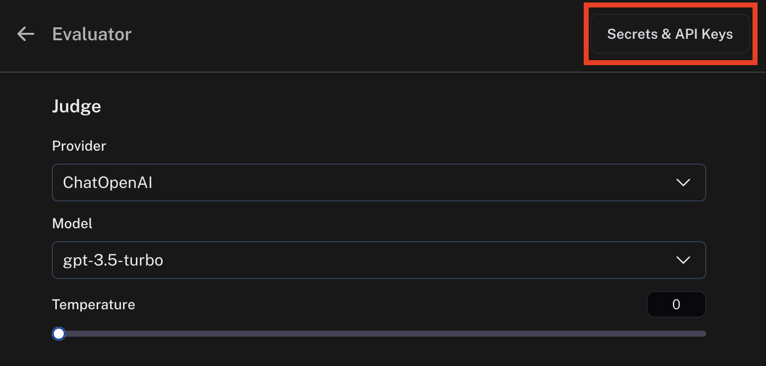 In order to set the API keys to use for these invocations, click on the Secrets & API Keys button and add the necessary keys.