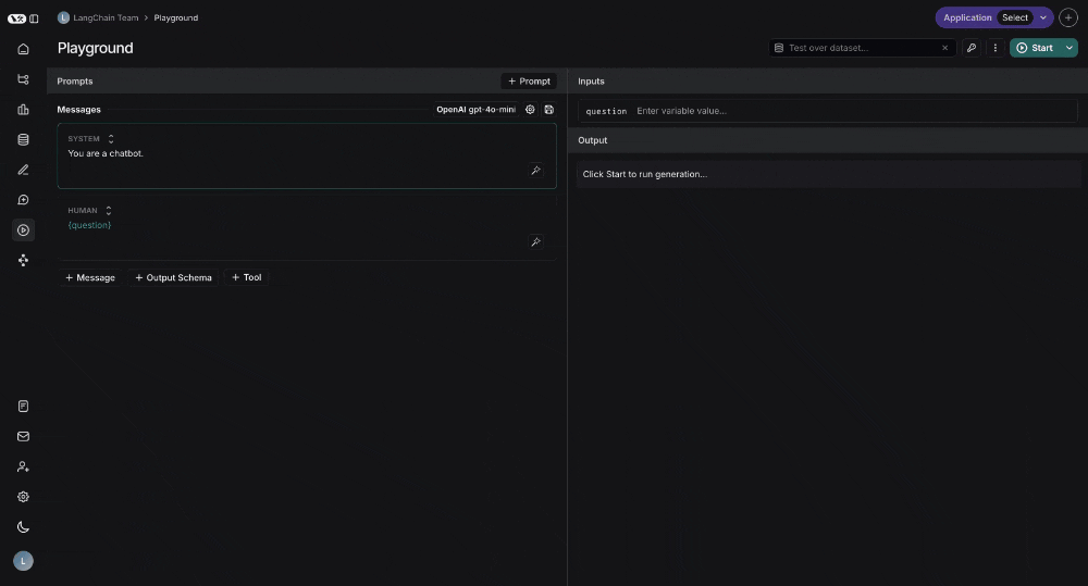 The prompt playground makes the process of iterating and testing your prompts seamless. You can enter the playground from the sidebar or directly from a saved prompt.