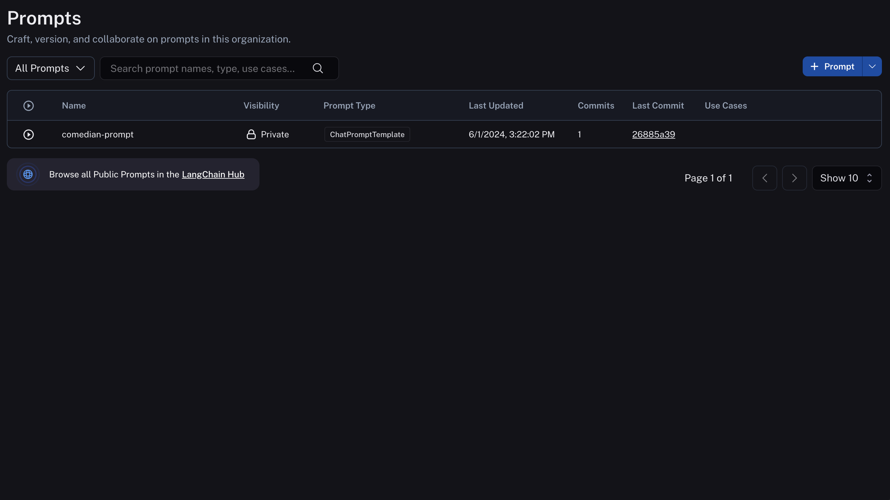 You've just created your first prompt! View a table of your prompts in the prompts tab.